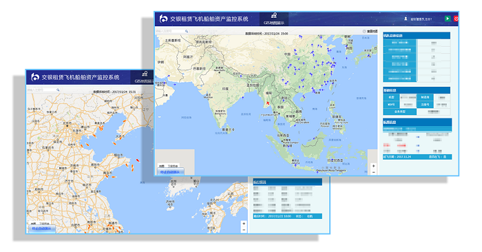 隨著交銀租賃業務的發展,飛機船舶數量均已超過150架,如何做好這種價格昂貴的大型租賃物的非現場檢查將顯得尤為重要,飛機船舶資產監控系統通過接入國內外相關網站的飛機船舶信息數據,實時的將租賃物位置以GIS地圖的方式進行圖形化的展示,并通過飛機船舶航行情況的統計分析,對其異常運營情況進行預警,達到對租賃物的情況進行實時監控,不僅對租賃物資產風險加以控制,也從另一方面了解了到租賃客戶的運營情況,為客戶的風險評級提供了重要的依據。