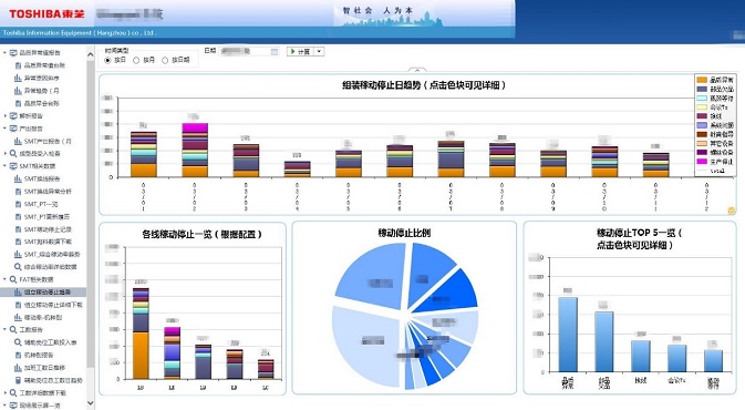 東芝制造車間生產(chǎn)過程中的數(shù)據(jù)包括車間人員、物料、加工設(shè)備、工票、工裝、加工過程等,涉及車間各個部分。面向東芝內(nèi)部的生產(chǎn)部門,為一線生產(chǎn)人員及質(zhì)檢部門提供數(shù)據(jù)填報及數(shù)據(jù)分析平臺,是一個完全基于互聯(lián)網(wǎng)技術(shù)構(gòu)建的智能數(shù)據(jù)系統(tǒng)。