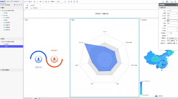 支持敏捷看板,即席報告,幻燈片等多種分析方式,使數(shù)據(jù)分析更貼近用戶應用的場景。并且提供多種可視化組件:表格、常規(guī)統(tǒng)計圖、html5統(tǒng)計圖、地圖等。