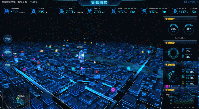 億信ABI內(nèi)置上百種可視化元素和特效組件,可搭配出成千上萬種可視化效果,更有獨(dú)特的3D全景視覺,能隨意制作出炫酷的大屏。