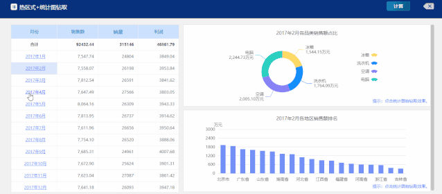 億信ABI能做的圖表分析是Excel無法實(shí)現(xiàn)的高級(jí)功能,比如:圖表鉆取。當(dāng)你點(diǎn)擊圖表中的某一個(gè)數(shù)據(jù),讓圖標(biāo)跳轉(zhuǎn)展示點(diǎn)擊數(shù)據(jù)的更詳細(xì)的數(shù)據(jù)。逐層下鉆的功能,將匯總的數(shù)據(jù)逐次展示到細(xì)節(jié)數(shù)據(jù)進(jìn)行觀察,清晰明了。