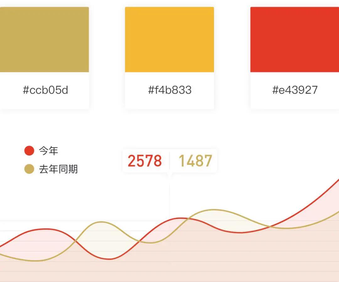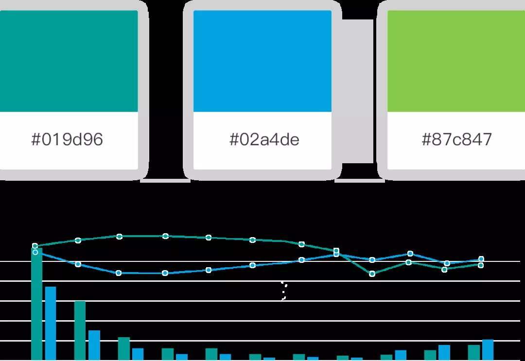 除了與背景的配色對(duì)比外,圖表本身的顏色選擇也很重要,要利于業(yè)務(wù)信息傳達(dá)。選擇的顏色不要過于相近,這樣不利于數(shù)據(jù)間的區(qū)分,會(huì)降低閱讀舒適感。